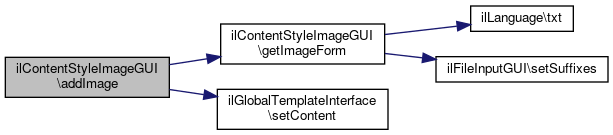 Here is the call graph for this function:| ilContentStyleImageGUI::addImage | ( | ) |