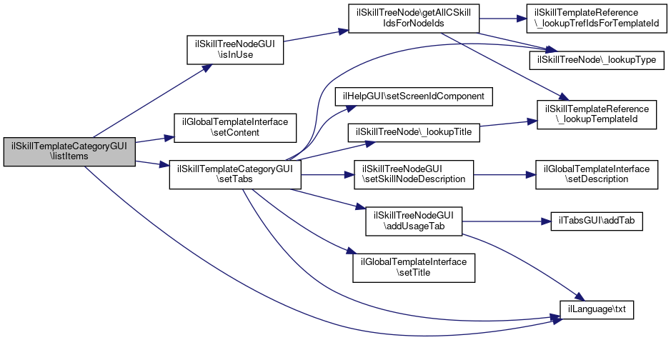 Here is the call graph for this function:| ilSkillTemplateCategoryGUI::listItems | ( | ) |