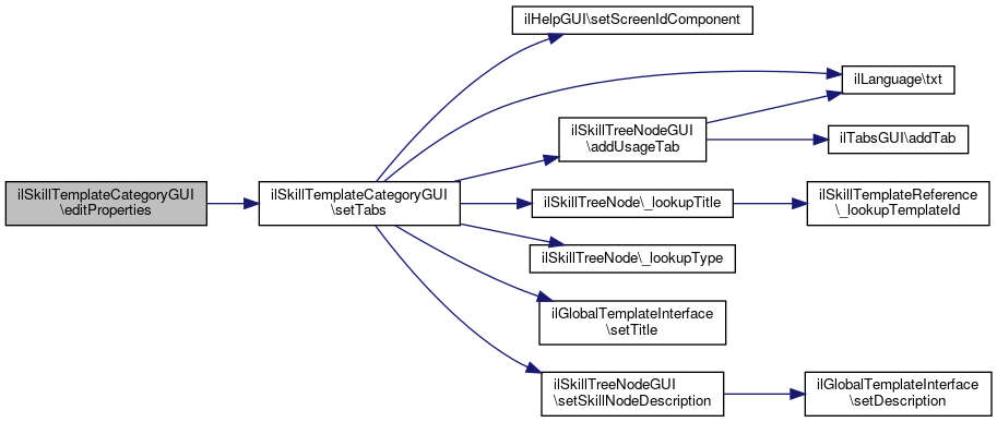 Here is the call graph for this function:| ilSkillTemplateCategoryGUI::editProperties | ( | ) |