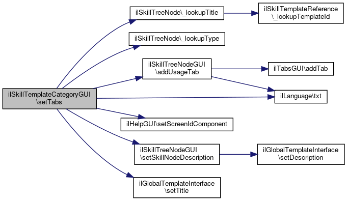 Here is the call graph for this function:| ilSkillTemplateCategoryGUI::setTabs | ( | string | $a_tab | ) |