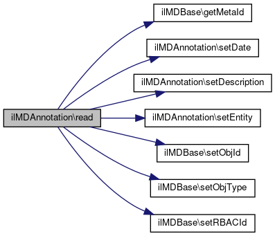 Here is the caller graph for this function:| ilMDAnnotation::read | ( | ) |