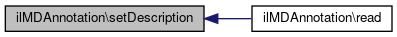 Here is the caller graph for this function:| ilMDAnnotation::setDescription | ( | string | $a_desc | ) |
