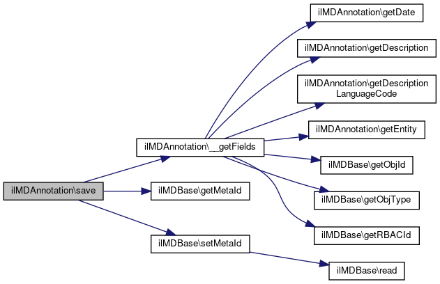 Here is the call graph for this function:| ilMDAnnotation::save | ( | ) |