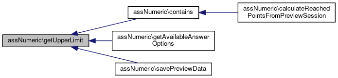 Here is the caller graph for this function:| assNumeric::getUpperLimit | ( | ) |