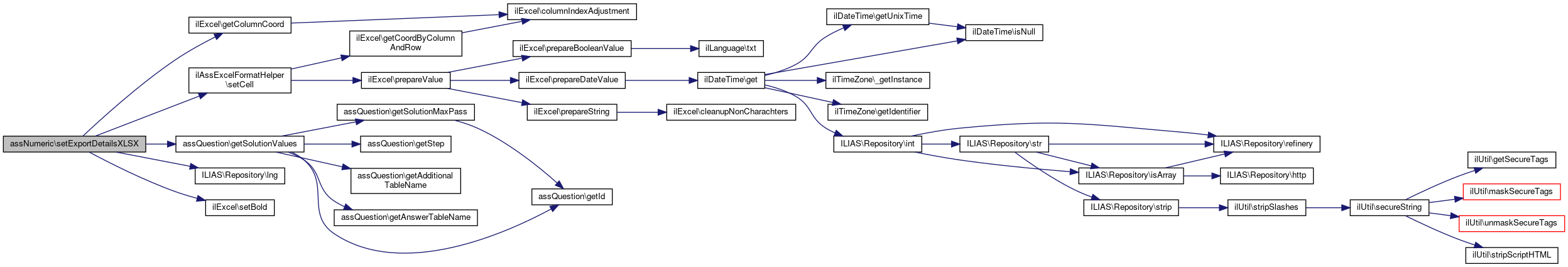 Here is the call graph for this function:| assNumeric::setExportDetailsXLSX | ( | ilAssExcelFormatHelper | $worksheet, |