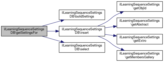 Here is the call graph for this function:| ilLearningSequenceSettingsDB::getSettingsFor | ( | int | $lso_obj_id | ) |