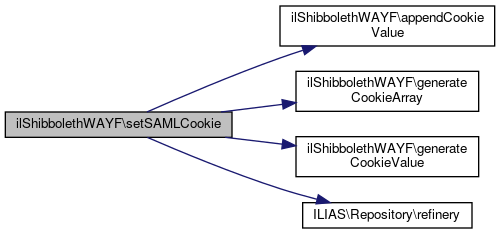Here is the call graph for this function:| ilShibbolethWAYF::setSAMLCookie | ( | ) |