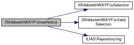 Here is the call graph for this function:| ilShibbolethWAYF::showNotice | ( | ) |