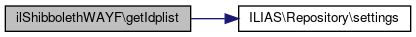 Here is the call graph for this function:| ilShibbolethWAYF::getIdplist | ( | ) |