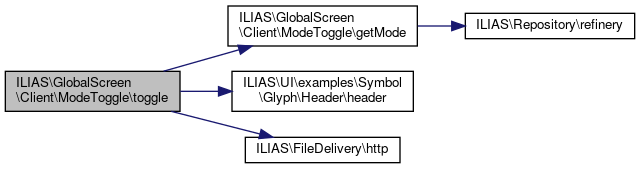 Here is the call graph for this function:| ILIAS\GlobalScreen\Client\ModeToggle::toggle | ( | ) |