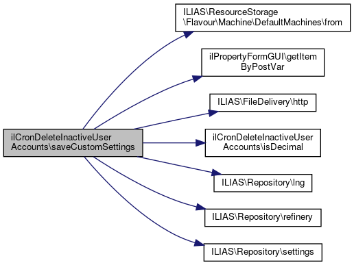 Here is the call graph for this function:| ilCronDeleteInactiveUserAccounts::saveCustomSettings | ( | ilPropertyFormGUI | $a_form | ) |
