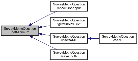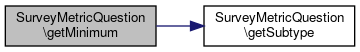 Here is the caller graph for this function:| SurveyMetricQuestion::getMinimum | ( | ) |