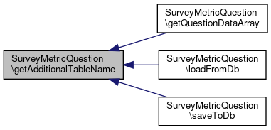 Here is the call graph for this function:| SurveyMetricQuestion::getAdditionalTableName | ( | ) |