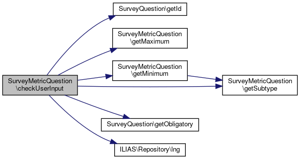 Here is the call graph for this function:| SurveyMetricQuestion::checkUserInput | ( | array | $post_data, |