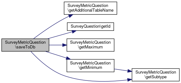 Here is the call graph for this function:| SurveyMetricQuestion::saveToDb | ( | int | $original_id = 0 | ) |