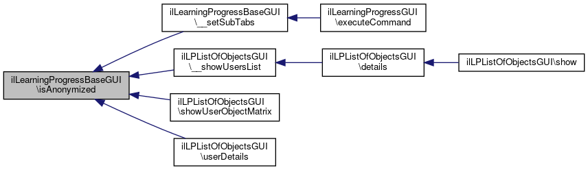 Here is the caller graph for this function:| ilLearningProgressBaseGUI::isAnonymized | ( | ) |