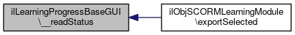References $comment, ilLearningProgress\_getProgress(), _getStatusText(), ilLPMarks\_hasCompleted(), ilLPMarks\_lookupComment(), ilLPMarks\_lookupMark(), ilLPStatus\_lookupPercentage(), ilLPStatus\_lookupStatus(), ilObject\_lookupTitle(), ilInfoScreenGUI\addProperty(), ilInfoScreenGUI\addSection(), ilDatePresentation\formatDate(), ilLegacyFormElementsUtil\formSelect(), ilLPStatusIcons\getInstance(), ilObjectLP\getInstance(), ilLPStatusIcons\ICON_VARIANT_LONG, IL_CAL_UNIX, ILIAS\Repository\int(), ilObjectLP\isSupportedObjectType(), ILIAS\Repository\lng(), ilLPObjSettings\LP_MODE_CMIX_COMPL_OR_PASSED_WITH_FAILED, ilLPObjSettings\LP_MODE_CMIX_COMPL_WITH_FAILED, ilLPObjSettings\LP_MODE_CMIX_COMPLETED, ilLPObjSettings\LP_MODE_CMIX_COMPLETED_OR_PASSED, ilLPObjSettings\LP_MODE_CMIX_PASSED, ilLPObjSettings\LP_MODE_CMIX_PASSED_WITH_FAILED, ilLPObjSettings\LP_MODE_LTI_OUTCOME, ilLPObjSettings\LP_MODE_MANUAL, ilLPObjSettings\LP_MODE_SCORM, ilLPObjSettings\LP_MODE_TEST_PASSED, ilLPObjSettings\LP_MODE_TLT, ilLPObjSettings\LP_MODE_VISITS, ilDatePresentation\secondsToString(), and ilObjectLP\supportsMark().