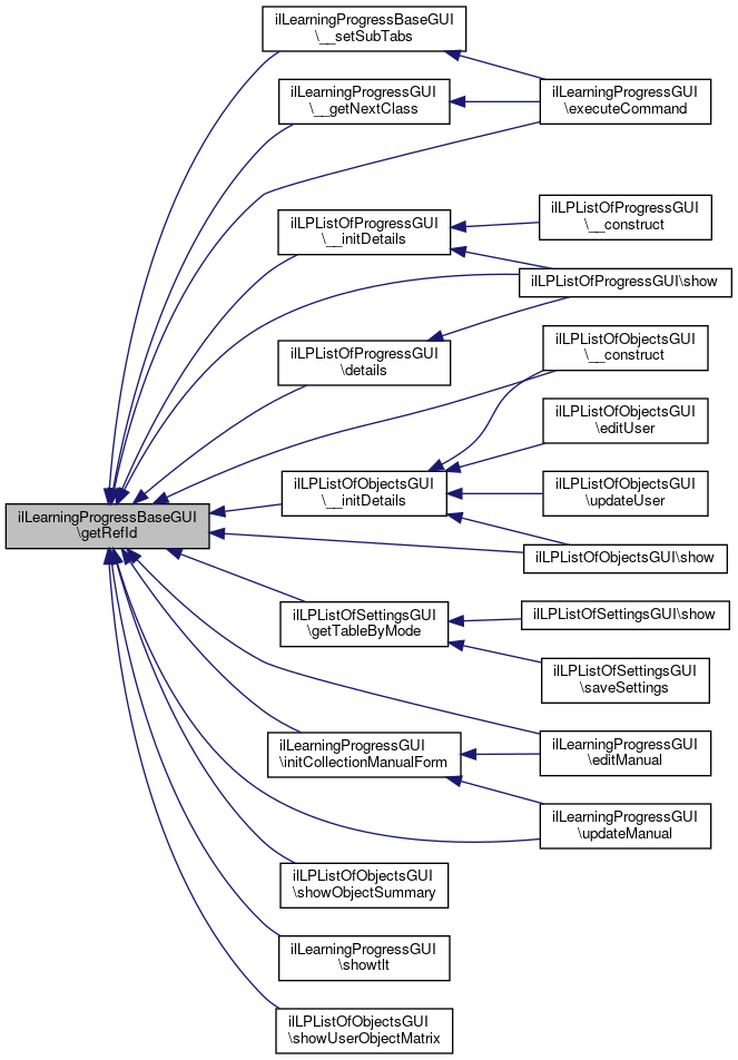 Here is the caller graph for this function:| ilLearningProgressBaseGUI::getRefId | ( | ) |
