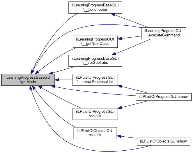 Here is the caller graph for this function:| ilLearningProgressBaseGUI::getMode | ( | ) |
