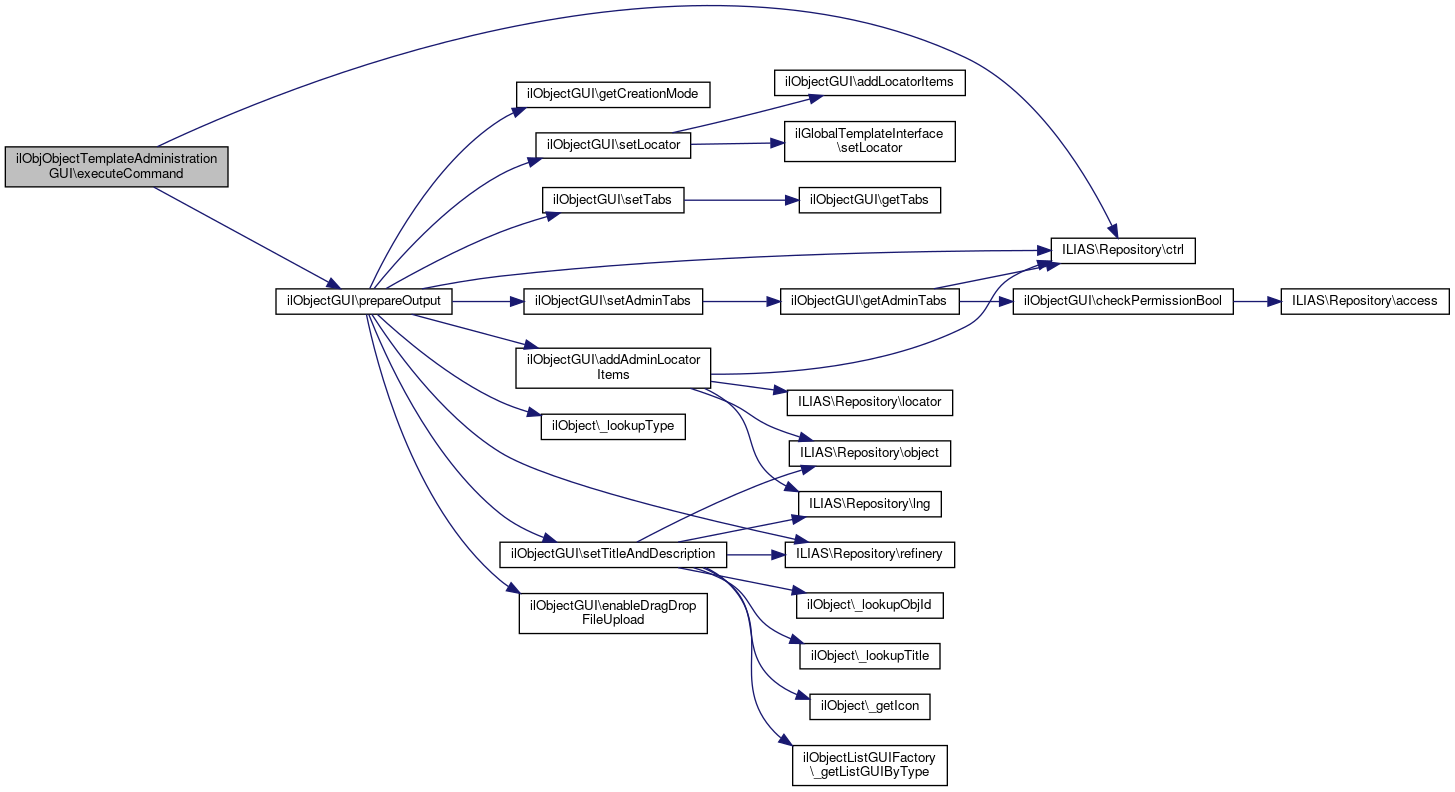 Here is the call graph for this function:| ilObjObjectTemplateAdministrationGUI::executeCommand | ( | ) |