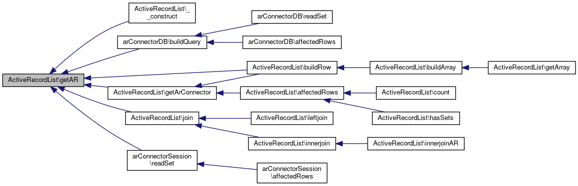 References getAR(), getArSelectCollection(), ActiveRecord\getConnectorContainerName(), and setAR().