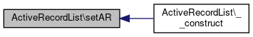 Here is the caller graph for this function:| ActiveRecordList::setAR | ( | \ActiveRecord | $activeRecord | ) |