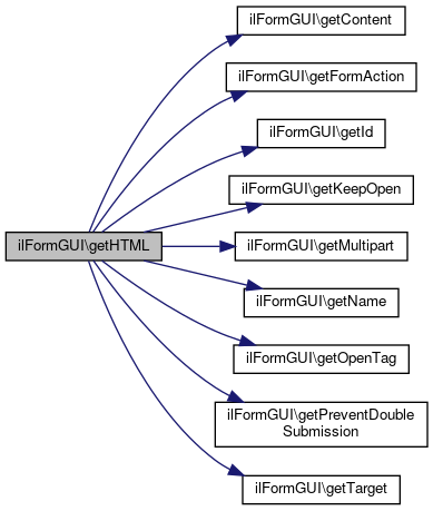 Here is the caller graph for this function:| ilFormGUI::getHTML | ( | ) |