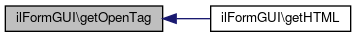 Here is the caller graph for this function:| ilFormGUI::getOpenTag | ( | ) |