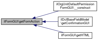 Here is the caller graph for this function:| ilFormGUI::getFormAction | ( | ) |