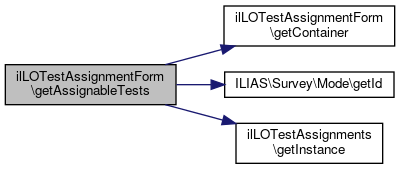 References getContainer(), ILIAS\Survey\Mode\getId(), and ilLOTestAssignments\getInstance().
