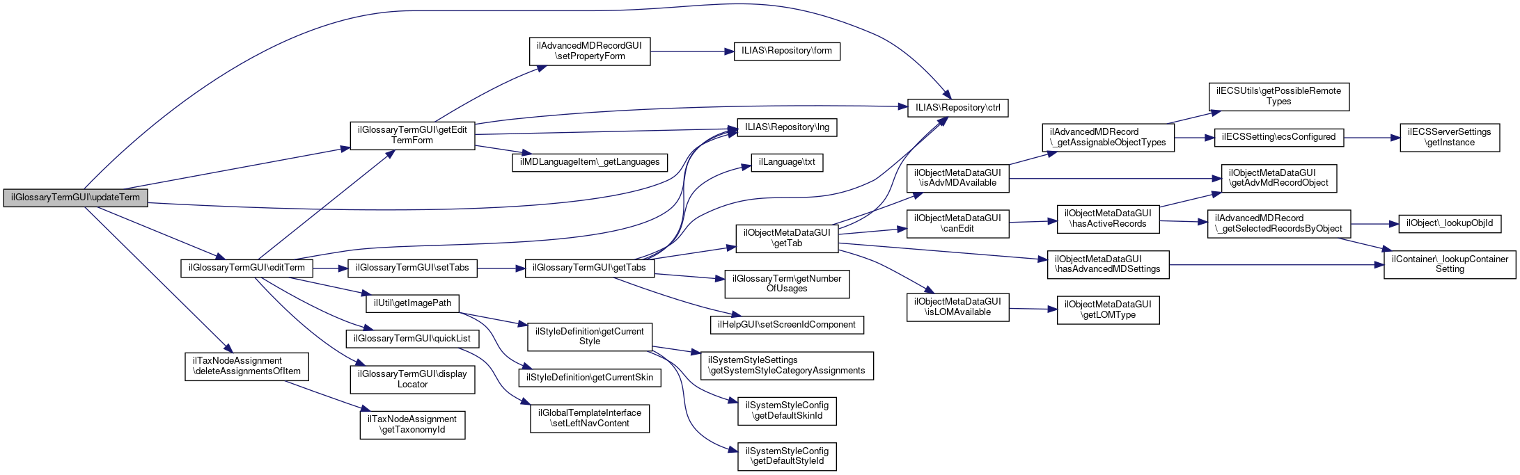 Here is the caller graph for this function:| ilGlossaryTermGUI::updateTerm | ( | ) |