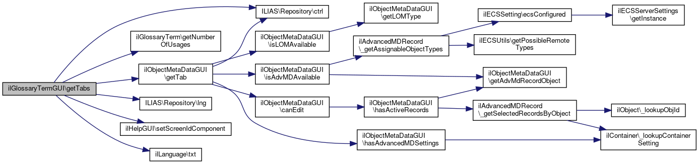 Here is the call graph for this function:| ilGlossaryTermGUI::getTabs | ( | ) |