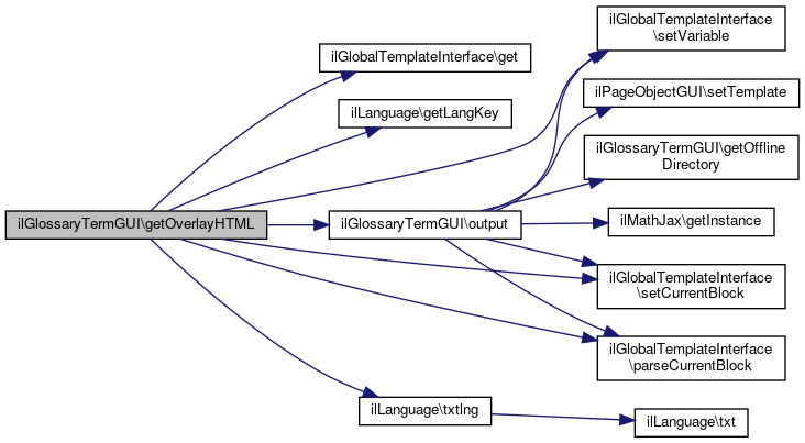 Here is the call graph for this function:| ilGlossaryTermGUI::output | ( | bool | $a_offline = false, |
