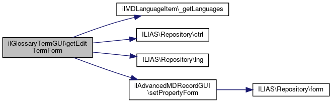 Here is the call graph for this function:| ilGlossaryTermGUI::getEditTermForm | ( | ) |
