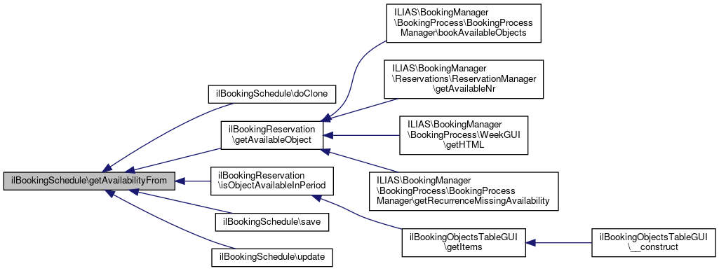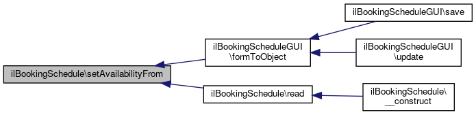 Here is the caller graph for this function:| ilBookingSchedule::getAvailabilityFrom | ( | ) |