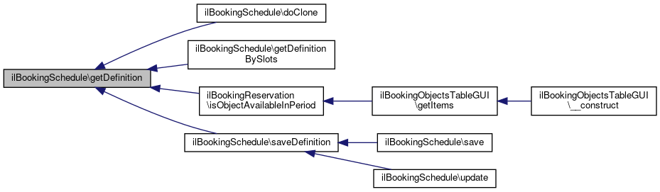 Here is the caller graph for this function:| ilBookingSchedule::getDefinition | ( | ) |