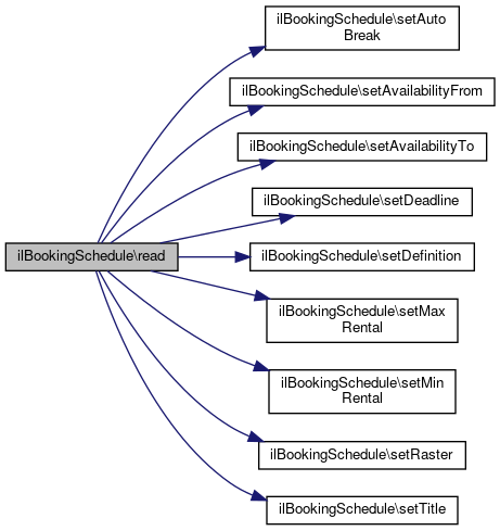 References $db, $ilDB, IL_CAL_UNIX, setAutoBreak(), setAvailabilityFrom(), setAvailabilityTo(), setDeadline(), setDefinition(), setMaxRental(), setMinRental(), setRaster(), and setTitle().