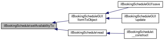 Here is the caller graph for this function:| ilBookingSchedule::setAvailabilityTo | ( | ?ilDateTime | $a_date = null | ) |