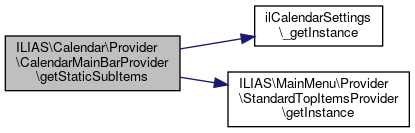 Here is the call graph for this function:| ILIAS\Calendar\Provider\CalendarMainBarProvider::getStaticTopItems | ( | ) |