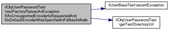 Here is the call graph for this function:| ilObjUserPasswordTest::testFactoryRaisesAnExceptionIfAnUnsupportedEncoderIsRequestedAndNoDefaultEncoderWasSpecifiedInFallbackMode | ( | ) |