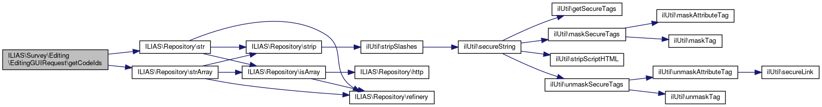 Here is the call graph for this function:| ILIAS\Survey\Editing\EditingGUIRequest::getCodeIds | ( | ) |