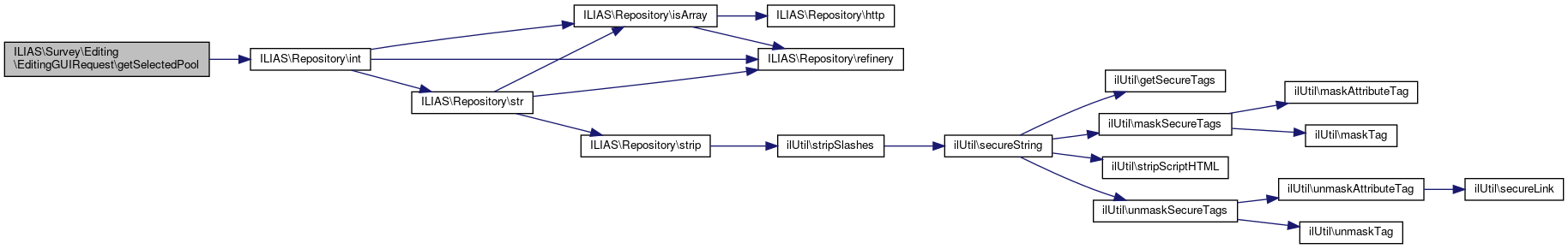 Here is the call graph for this function:| ILIAS\Survey\Editing\EditingGUIRequest::getSelectedPool | ( | ) |