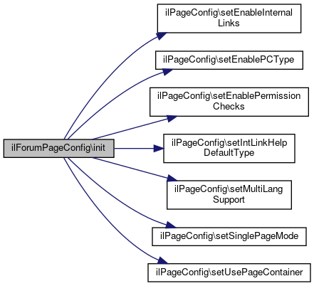 References ilPageConfig\setEnableInternalLinks(), ilPageConfig\setEnablePCType(), ilPageConfig\setEnablePermissionChecks(), ilPageConfig\setIntLinkHelpDefaultType(), ilPageConfig\setMultiLangSupport(), ilPageConfig\setSinglePageMode(), and ilPageConfig\setUsePageContainer().