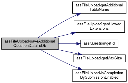 Here is the caller graph for this function:| assFileUpload::saveAdditionalQuestionDataToDb | ( | ) |