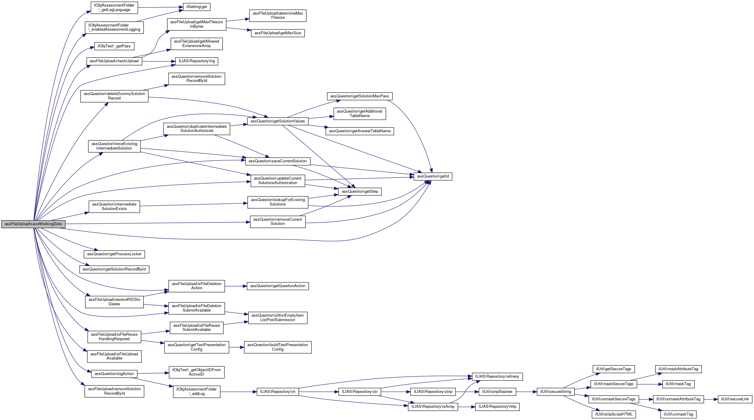 Here is the call graph for this function:| assFileUpload::saveWorkingData | ( | $active_id, | |