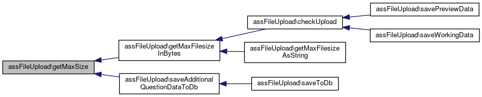 Here is the call graph for this function:| assFileUpload::setMaxSize | ( | ?int | $value | ) |