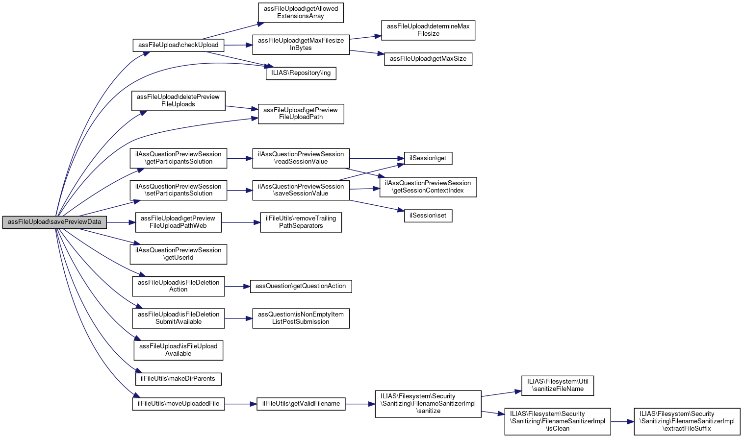 References Vendor\Package\$e, $version, checkUpload(), deletePreviewFileUploads(), ilAssQuestionPreviewSession\getParticipantsSolution(), getPreviewFileUploadPath(), getPreviewFileUploadPathWeb(), ilAssQuestionPreviewSession\getUserId(), isFileDeletionAction(), isFileDeletionSubmitAvailable(), isFileUploadAvailable(), ILIAS\Repository\lng(), ilFileUtils\makeDirParents(), ilFileUtils\moveUploadedFile(), and ilAssQuestionPreviewSession\setParticipantsSolution().