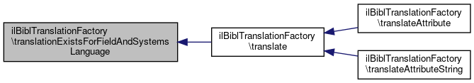 Here is the call graph for this function:| ilBiblTranslationFactory::translationExistsForFieldAndSystemsLanguage | ( | ilBiblFieldInterface | $field | ) |