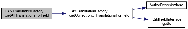 Here is the call graph for this function:| ilBiblTranslationFactory::getAllTranslationsForField | ( | ilBiblFieldInterface | $field | ) |