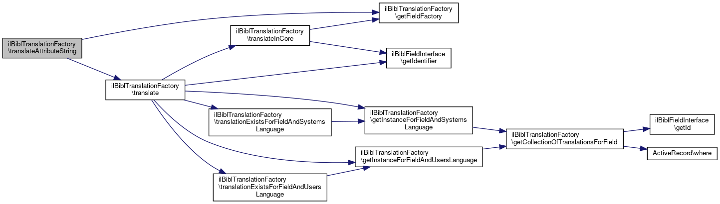 Here is the call graph for this function:| ilBiblTranslationFactory::translateAttributeString | ( | int | $type_id, |